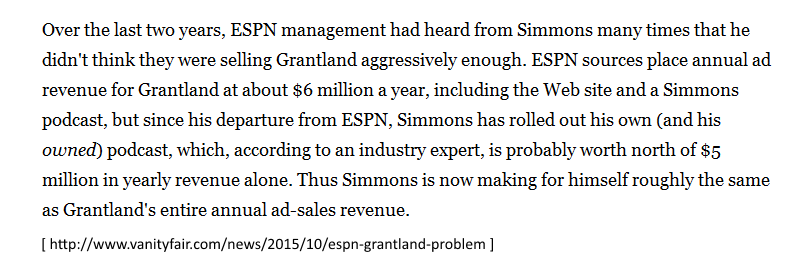 Oh, ESPN as a whole probably doesn't have a lot of headroom for revenue growth, but for Grantland itself, earning tiny amounts...